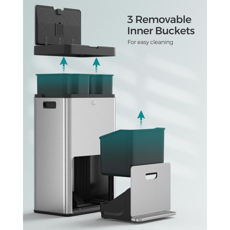 Effektiv sortering i en kompakt och elegant design med 3 fack som gör det enkelt att separera avfall i köket