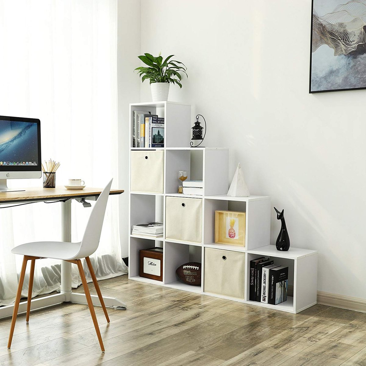 Stegformad bokhylla/kubhylla med 10 öppna fack som kan användas som rumsavdelare eller mot vägg