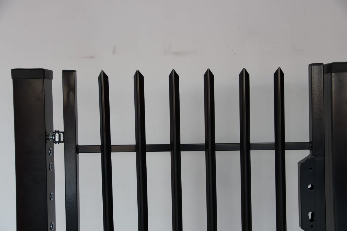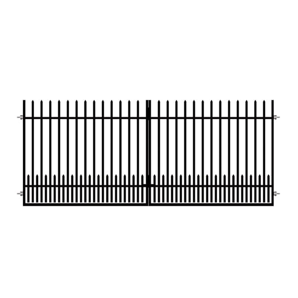 Dubbelgrind Utö 4 m är den ultimata lösningen för att skapa en avgränsad och trygg utomhusmiljö. Vår pulverlackerade svarta grind har en glansig yta som ger en modern känsla till ditt hem. Med en bredd på 400 cm och en höjd på upp till 150 cm är denna grind tillverkad för att hålla. Fyllningselementen i vinkelprofil med fyllningstvärsnittet 25×25 mm gör denna grind robust och tålig. Ramen med tvärsnitt på 40×40 mm och armeringsvärsnittet på 25×15 mm gör konstruktionen extra stark och stabil. Avståndet mellan fyllningselementen är 10 cm på de flesta ställen, men smalnar av till 3 cm på den nedre delen för att hindra mindre objekt från att passera igenom.