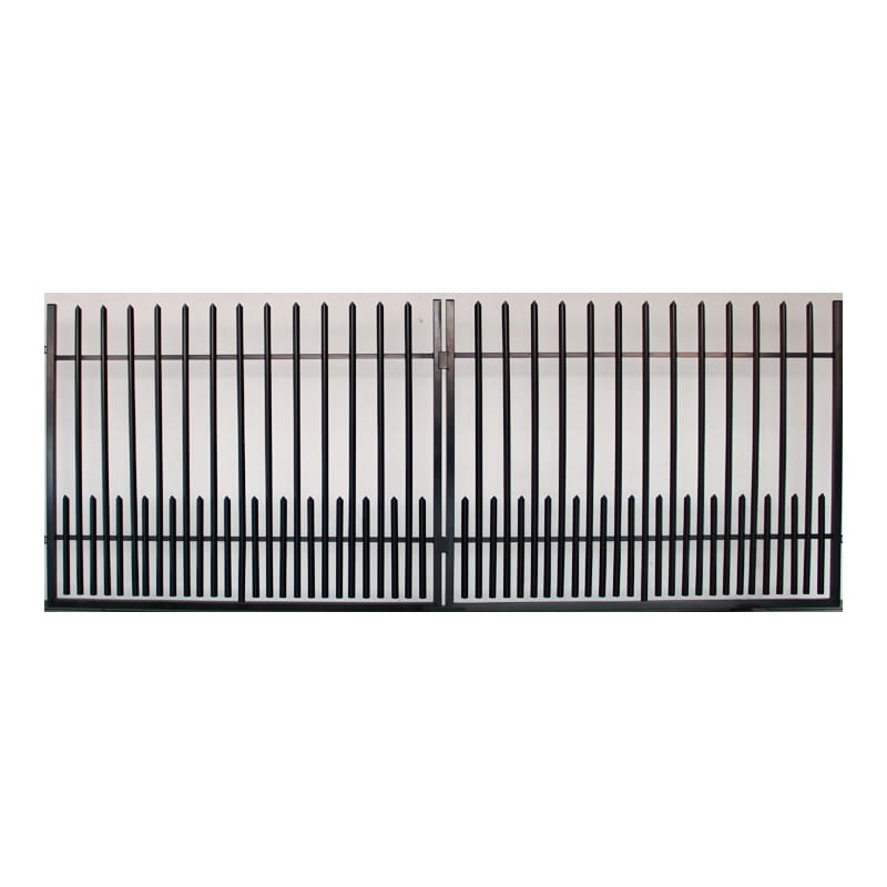 Bredd: 400 cm Höjd vid högsta punkt: 150 cm Höjd vid lägsta punkt: 120 cm Färg / RAL färg: RAL9005 – svart Ytbehandling: PULVERLACKAT Ytstruktur: Glans Typ av fyllning: Vinkel Fyllningstvärsnitt: 25×25 mm Armeringstvärsnitt: 25×15 mm Ram tvärsnitt: 40×40 mm Avståndet mellan fyllningselementen: 10 och 3 cm Antal skenor/fyllningselement: Lång – 13 stycken / kort – 14 stycken Vikt: 50,5 kg Leverans: 2-4 veckor Observera att grindstolparna, fästanordningar, handtaget, låsanordning, motor till grinden inte ingår i priset, utan är tillbehör. Stolpen och markfästet är tillbehör som säljs separat. OBS! Detta staket är endast grundmålat och bör målas igen med en täckande kulör.