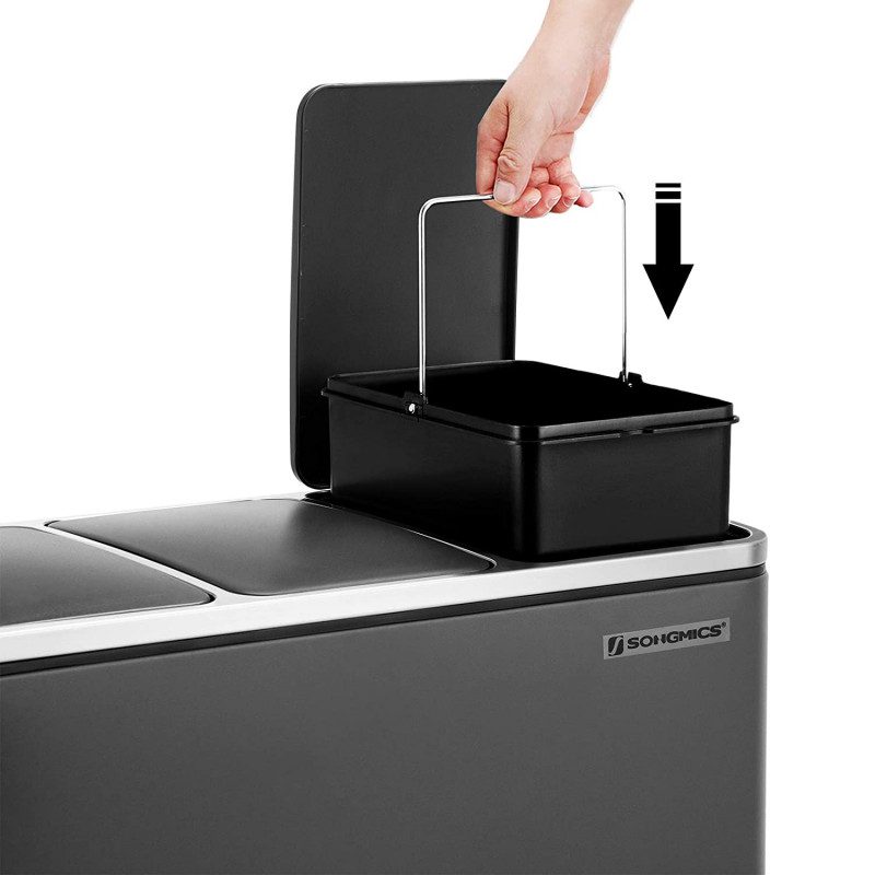 3 innerhinkar med handtag som enkelt kan lyftas ur och tömmas var för sig