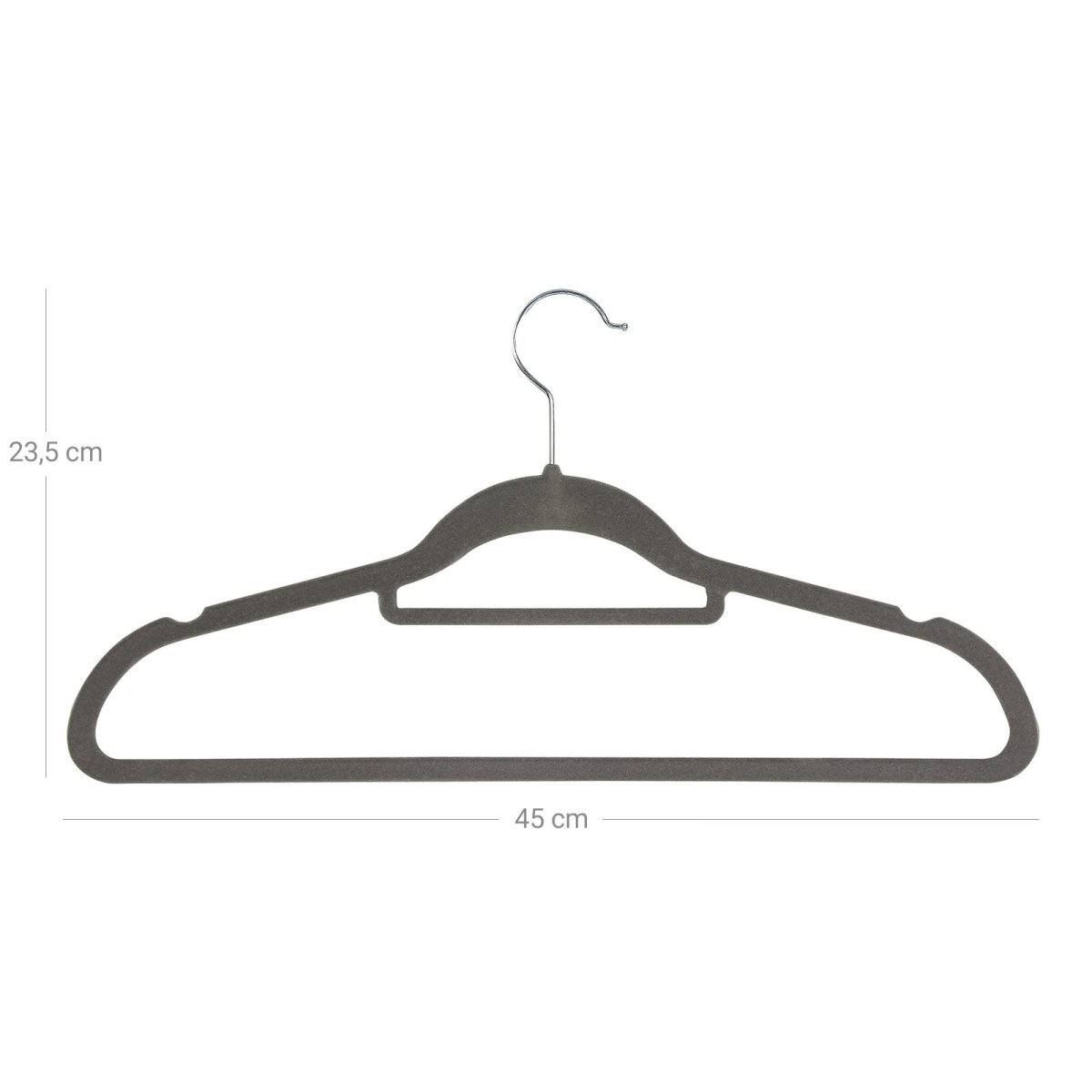 Tunn klädgalge 20-pack – halkfri sammetsyta, grå