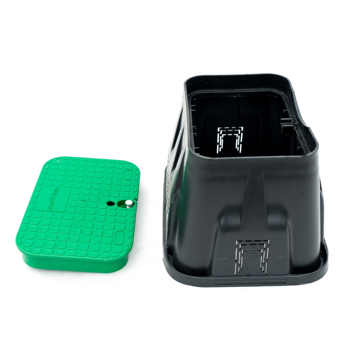 Ventilbrunnen, rektangulär (Standard) från RainBird, underlättar åtkomst till bevattningssystemets komponenter och skyddar elektrovventilerna från mekaniska skador.