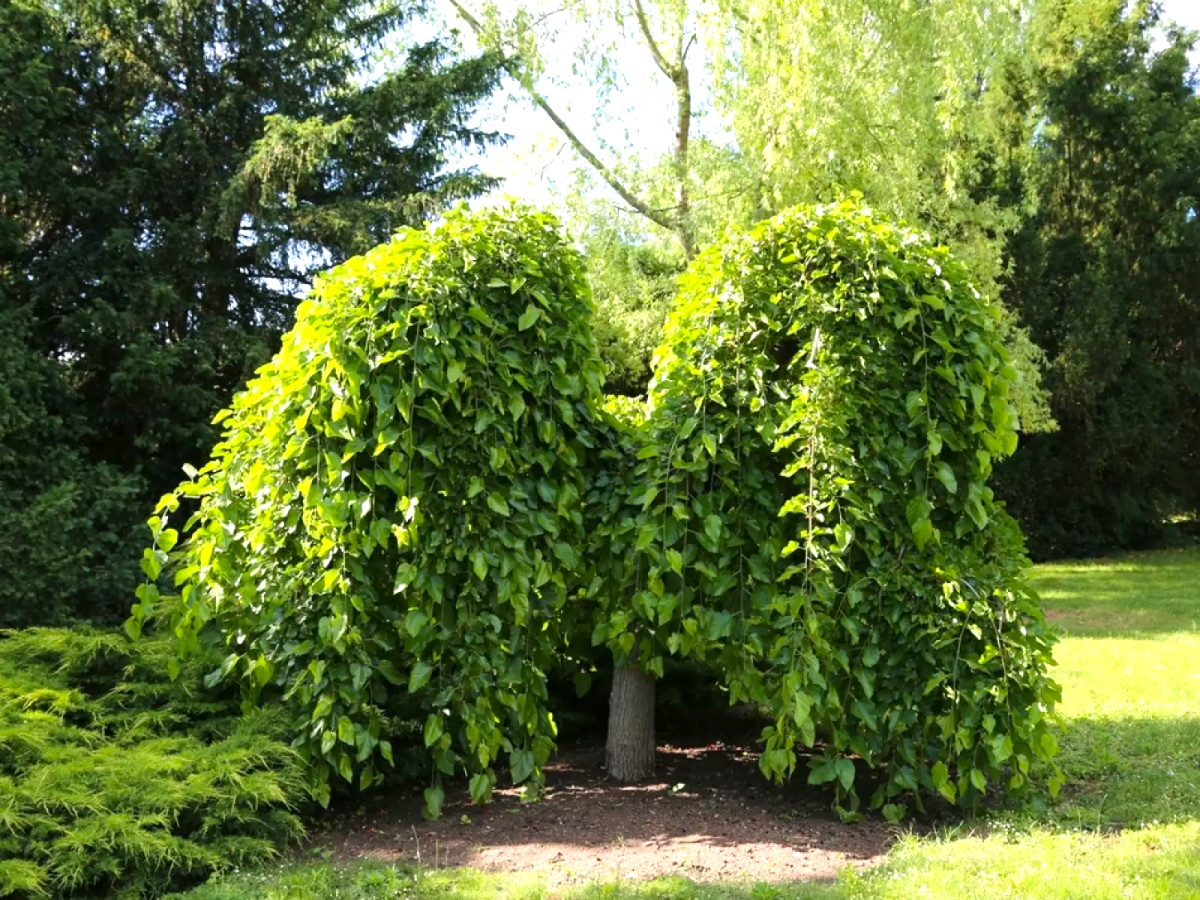 Dekorativ, hängande sort som är ympad på en högre stam. Har ett kraftigt hängande växtsätt och blir med åren mer bredvuxen än hög. Bladverket är glänsande grönt och består av ovala, lätt hjärtformade blad med tandade kanter. Höstfärgerna är gyllengula. Blommar med oansenliga han- och honhängen. Pollineras med hjälp av vinden och är självfertil. Bären mognar kontinuerligt från juli till september och ger en utdragen men bra skörd. De stora, avlånga bären är först helt vita för att sedan mogna till mörkröda, nästan svarta. Påminner om björnbär till utseendet med en sötsyrlig smak. Bären äts färska eller används till sylt, saft och bakverk.
