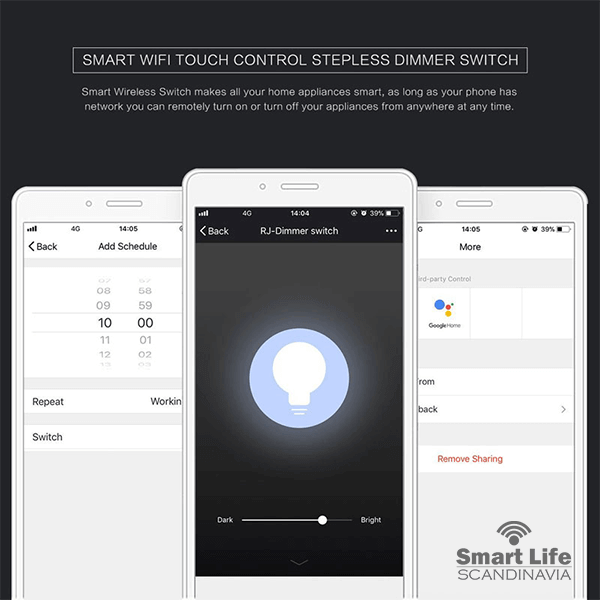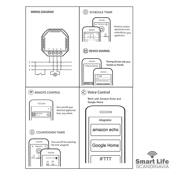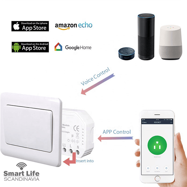 Smidig att installera bakom din befintliga strömbrytare och konfiguration görs snabbt via appen så att du sen kan njuta av full kontroll över ditt smarta hem med hjälp av din smartphone eller surfplatta.
