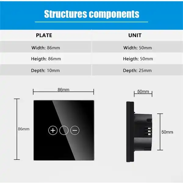 Det kristalltempererade glaset ger brytaren en lyxig, sofistikerad känsla samtidigt som den lilla, smidiga designen gör den till ett subtilt men elegant tillskott till ditt hem. En distinkt LED-lampa visar klart och tydligt om brytaren är aktiverad, vilket gör det enkelt att tända och släcka ljuset även i mörker, utan att behöva famla efter en lampknapp.