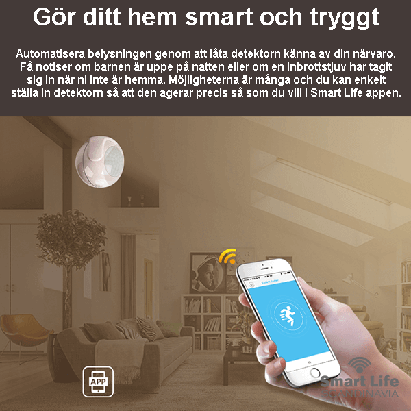 Automation – Låt detektorn känna av när du är i ett rum och koppla den till dina andra Smart Life enheter för automation. Då kan belysning och apparater styras helt automatiskt beroende på vart du befinner dig och att trycka på lampknappar blir ett minne blott.