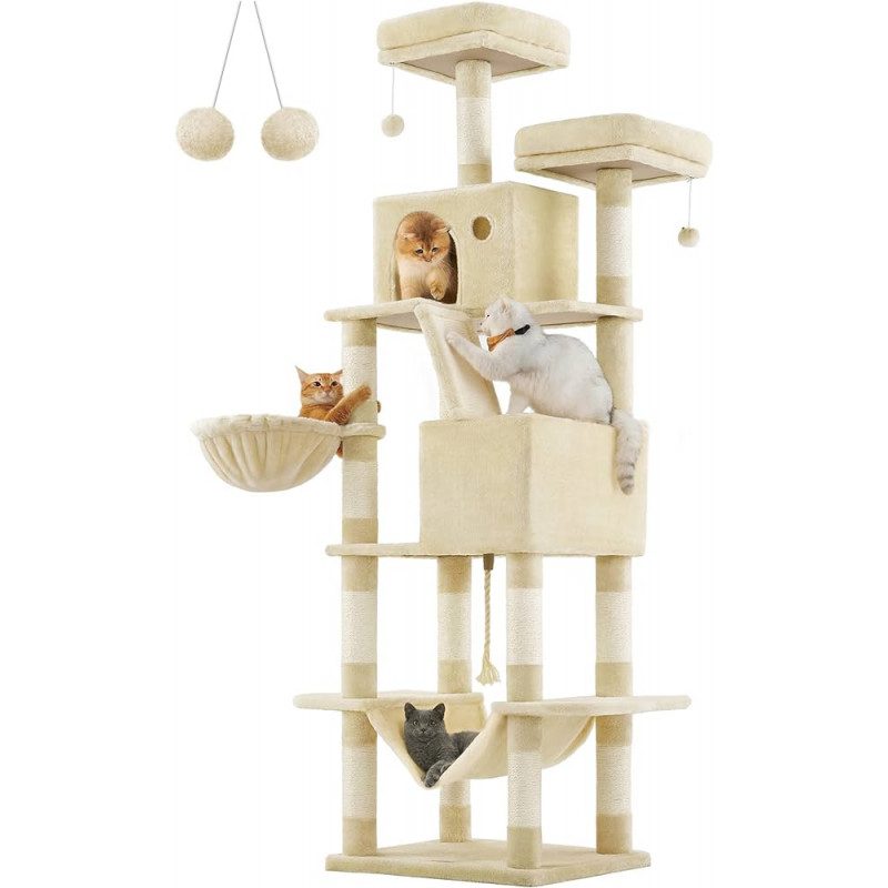 XXL klösträd i ljusbeige med två mysiga grottor – höjd 206 cm